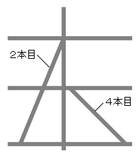 B、Cと同じようにして、上から2本目、4本目の向き、長さを変える