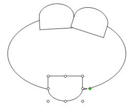 [図形描画]ツールバーの[楕円]を選んでドラッグして目の縁を描き、[線の色]の[▼]をクリックし、[線なし]をクリック