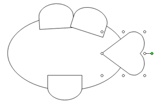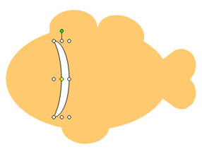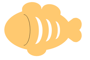 楕円、ハート、論理積ゲートなどを組み合わせて、魚の絵を描いてみましょう。えらの形は円弧でなく月を使って描いてみます。