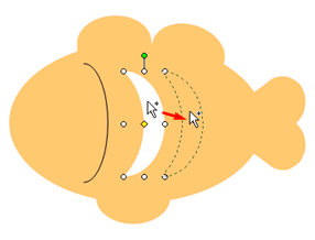 黄色の変形ハンドル(◇)をドラッグし、月の内側と外側を重ねるようにする