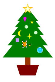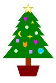 の中に色々な楽しい図形があります。ツリーの装飾に使ってみましょう。