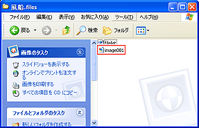 新しく生成されたフォルダ(ここでは「風船.files」フォルダ)をダブルクリックして開く