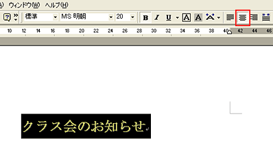 文字をドラックして選択し、[書式設定]ツールバーの[中央揃え]をクリック