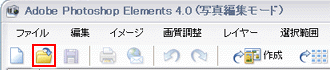Photoshop Elements 5.0の場合は、メニューバーの[ファイル]→[開く]をクリックします。