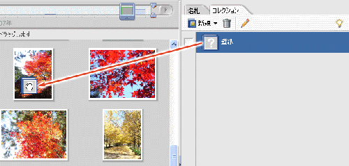 [コレクション]パネルの[壁紙]コレクションを、壁紙にしたい写真に重ねるようにドラッグ