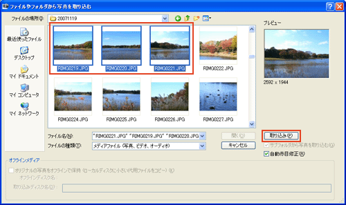 複数のファイルを選ぶときは、[Ctrl]キーを押しながらクリック
