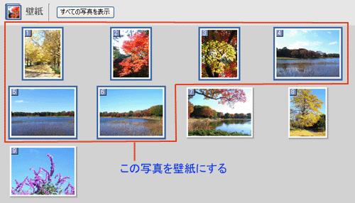 壁紙にする写真を[Shift]キーを押しながらクリックして選択する