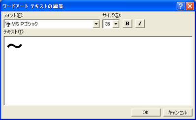 を選択し、[ワードアートテキストの編集]画面で「一」(漢数字のイチ)を一回入力し、フォントを「MS P明朝」に変更する。