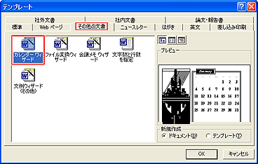 [その他の文書]タブをクリックし、[カレンダーウィザード]→[OK]をクリック
