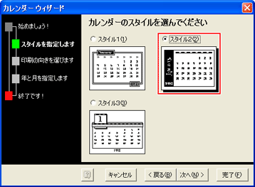 ここでは、[スタイル2]をクリックして選択し、[次へ]をクリック