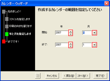 [▲][▼]をクリックして、開始年月と終了年月を指定し、[次へ]をクリック