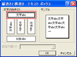 [文字の向き]で上の[文字abc]をクリックして選択し、[OK]をクリック