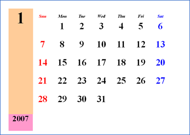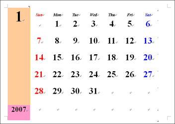 ここでは、2007年1月のカレンダーを作ります