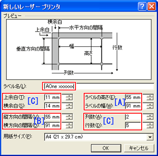 [上余白]、[横余白]、[列数]、[行数]を入力し、[OK]をクリック