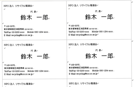 に進み、名前、住所、電話番号などを入力してすべての枠にコピーしたら、保存、印刷する