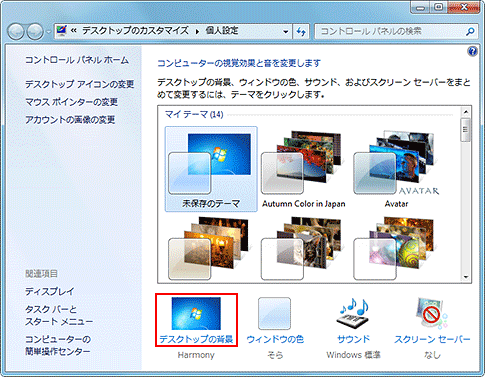 - [個人設定]画面で、[デスクトップの背景]をクリック