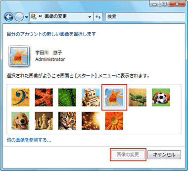 写真に変える場合は、[他の画像を参照する]をクリックし、写真を選択し[開く]をクリックして指定します。 |