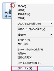 - [ドキュメント]画面などで、隠したいファイルを右クリックし、[プロパティ]をクリック