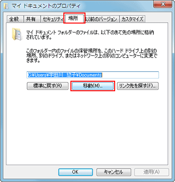 - [マイドキュメントのプロパティ]画面で、[場所]タブをクリック
