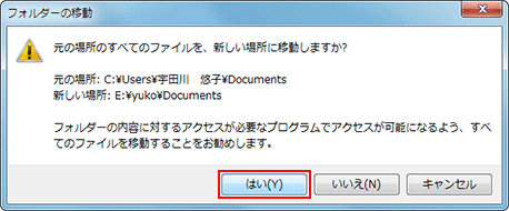 - [フォルダーの移動]画面で、[はい]をクリック