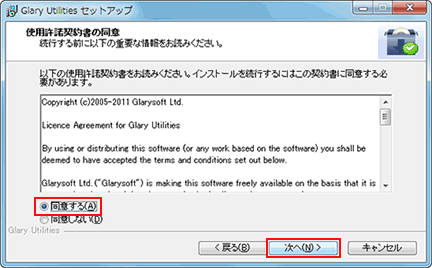- [Glary Utilities セットアップ]画面で、[次へ]をクリック