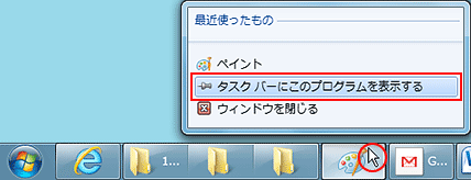 - タスクバーのソフトを右クリックし、[タスクバーにこのプログラムを表示する]をクリック