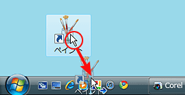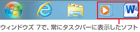 画面下部のタスクバーによく使うソフトを登録して、ワンクリックでソフトを立ち上げましょう。登録すると、ウィンドウズ 7ではソフト名がタスクバーに常に表示されます。ウィンドウズ ビスタ/XPでは、クイック起動に表示されます。 |