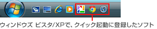 | ウィンドウズ ビスタ/XPで、クイック起動に登録しましょう