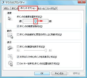 マウスを動かしても、マウスポインターがすばやく反応しないときは、マウスポインターの移動速度を速くします。 |