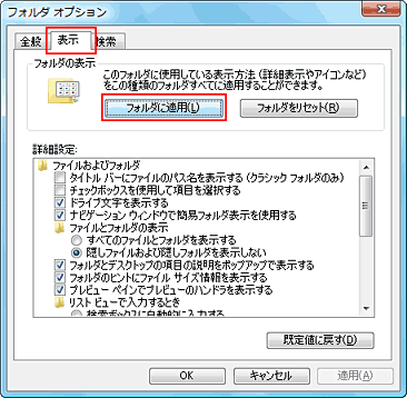 - [フォルダに適用](すべてのフォルダに適用)をクリック