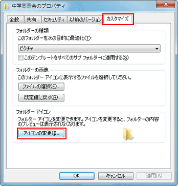 - [フォルダーアイコン]欄の[アイコンの変更]をクリック