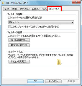 - [(フォルダー名)のプロパティ]画面で、[カスタマイズ]タブをクリック