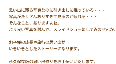 ご自身の歴史を振り返り、これまでの人生を映像で再現。